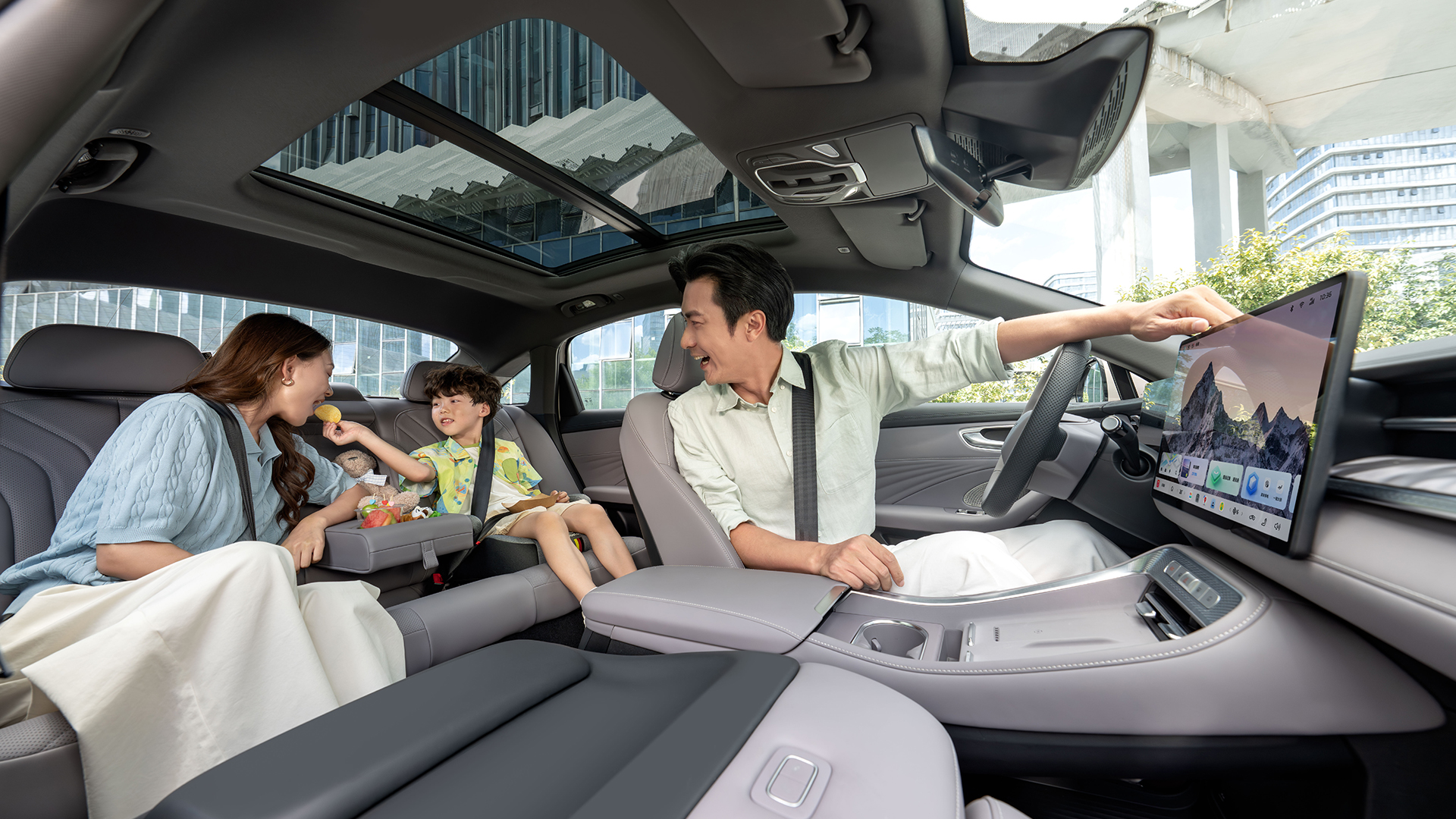 “荣威M7DMH,一款定义新时代出行的中大型豪华轿车。它搭载了先进的DMH6.0超级混动系统,为您带来无忧的长续航体验。车内集成‘豆包’深度思考大模型,提供更智能、更懂你的人机交互。而最极致的享受,莫过于置身于其全景天幕之下,躺在柔软舒适的全景沙发躺椅上,尽享旅途中的每一刻宁静与奢华。”